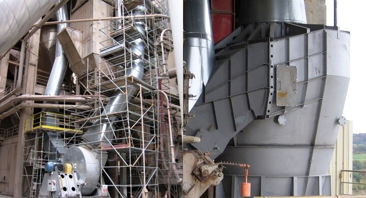 Original state: Calcining channel in five-stage preheater for mazut burning. When burning solid fuels, a portion of the energy attained could not be used, deposits formed and equipment became clogged.